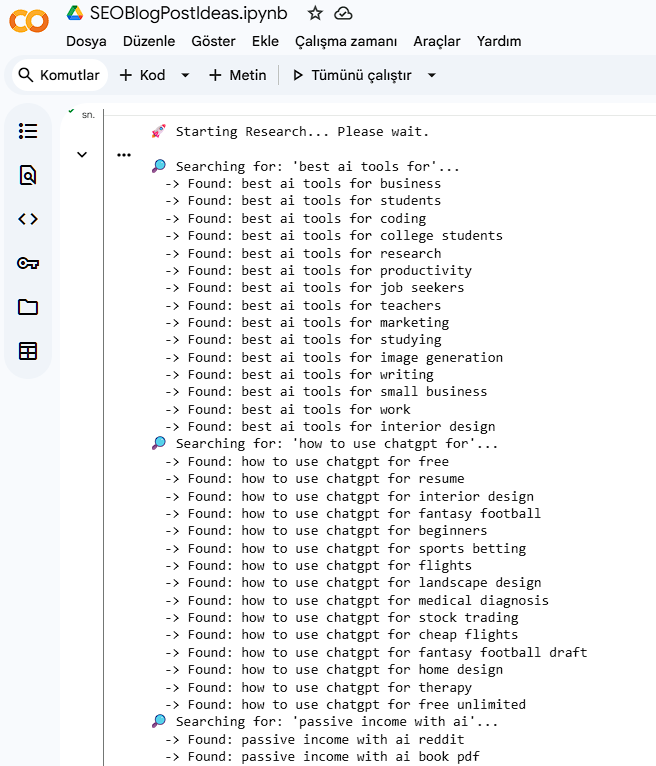 print(f"✅ SUCCESS! Found {len(found_keywords)} new content ideas.")